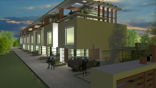 Em um lote estreito e comprido, de meio de quadra, o projeto organiza-se de forma linear tirando o máximo de aproveitamento do terreno. Com formas puras e caráter minimalistas, as 8 residências geminadas de 3 dormitórios cada têm vista para o Rio Guaíba e um terraço no 3º pavimento com diversas possibilidades de layout e ampliação.